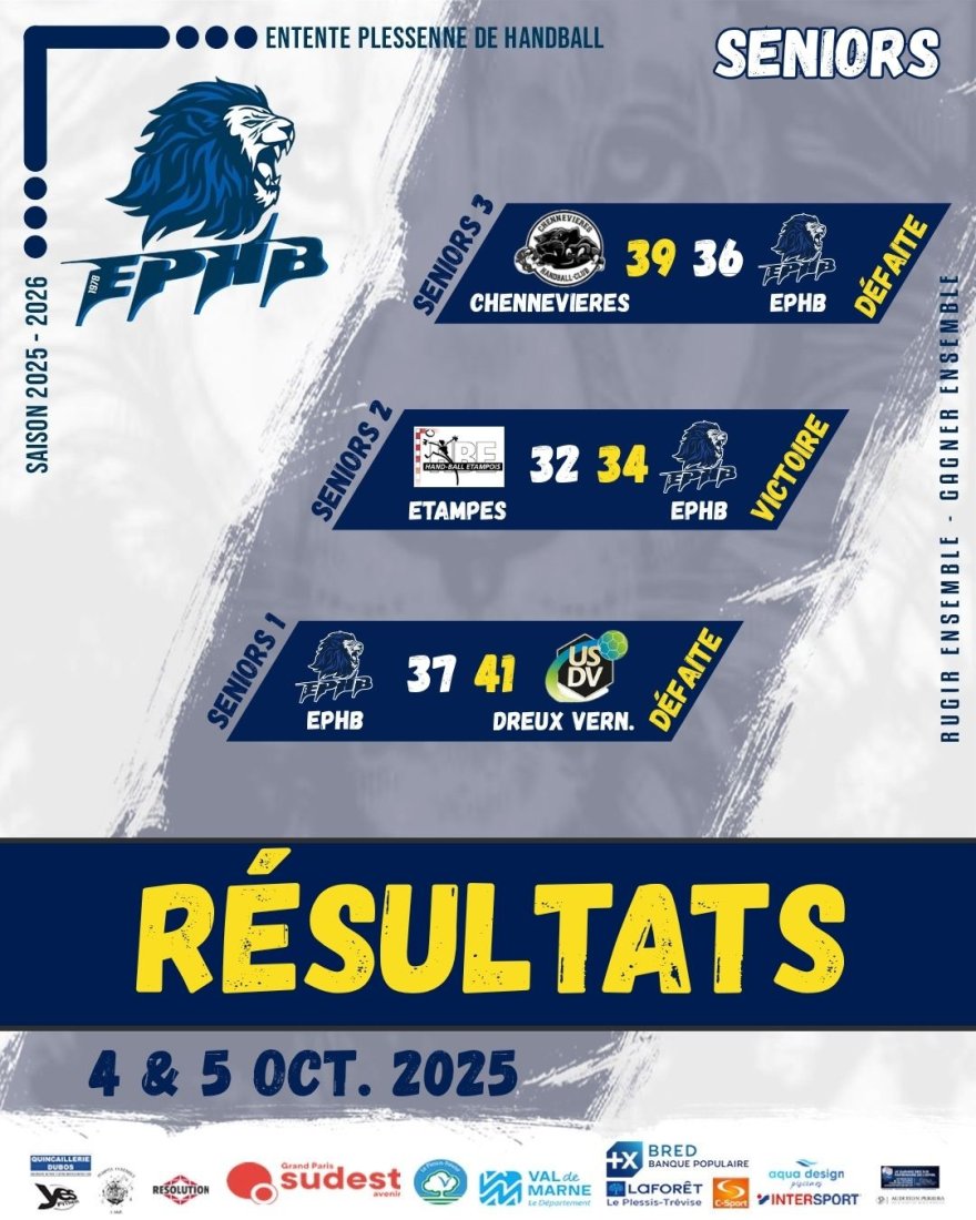 Le carton rouge de l'un de leur joueur fort, créé par Thomas Gourdi, a permis à nos plesséens de mieux contrer l'attaque d'Etampes sur la fin de match. Malgré une fin de match sous tension, l'EPHB a su maintenir son +2 pour ramener sa première victoire de saison ! On espère que cela va servir de déclic et de continuer à engendrer des points à domicile la semaine prochaine contre Melun.
